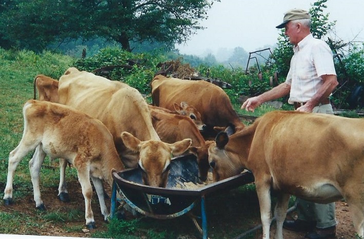 Why have a Lessor Jersey? These small cattle are more docile and easier to handle. They are easier on land, equipment, and your facilities; they do not have the size or bulk to do much harm on fencing. A small acreage owner can handle twice as many small cows on the same amount of land it would take to raise just one full-sized animal. Lessor Jerseys eat about 1/3 the amount of grain and hay as a standard size cow. You can easily keep two or three on an acre of good pasture. I mix corn, dairy supplement, vitamins, minerals, salt, and wet molasses for my cows’ feed. Lessor Jerseys are very hardy animals and adapt to whatever climate they are in, as long as you have shade when it is hot and some type of shelter from wet and cold weather.
