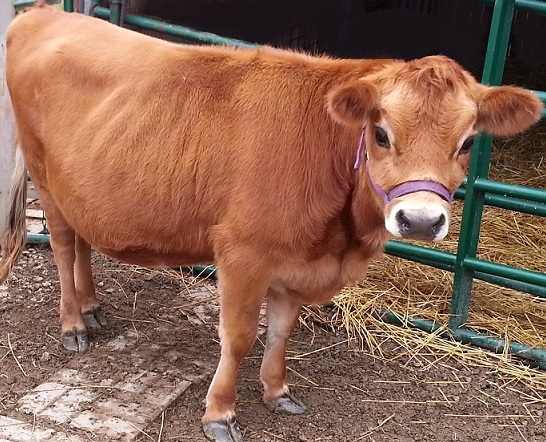 Here is a 38" mini cow in the milking process. She stands on a riser. So those thinking they want a" Micro mini " jersey. They are almost impossible to milk with a machine. Also a cow that produces 3 to 4 gallons of milk...